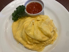 本日ご紹介する範馬の元は 範馬の大好物! そう! オムライス💕 モーニングに間に合わないという失態💦 某ファミレスのオムライスを初めて実食🍴とっても素敵💓 チーズ入り🧀で酸味の効いたトマトソース🍅 めっっっちゃおいしかった💕