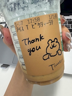 そういえばブログにかきわすれたけど この間のジェラピケドリンク、イラスト書いてくれてました これみんな描いてもらえるのかな? 描くの大変だと思うけどすごく嬉しいよなあ 店員さんありがとうでした。 りん