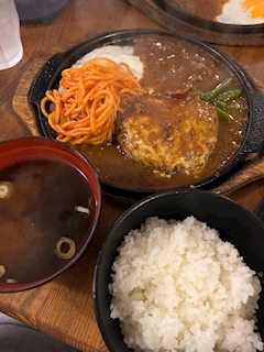 こんばんは! 今日食べたはんばーぐ! 撮影前に!!! おいしかった! ボリューミーで あつあつで 幸せかんじました! ありがとうございます! これのおかげで頑張れた!笑 イチョウ綺麗だったー!