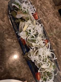 こんばんは🌙 本日の範馬の元はカルパッチョ!!!!! お写真はいかのカルパッチョ!初めて食べた!!!!!! 範馬はカルパッチョ大好き!特に鯛のカルパッチョ❤️ お店になくても鯛で作ってもらうくらい好き✨ みんなは何のカルパッチョが好き?