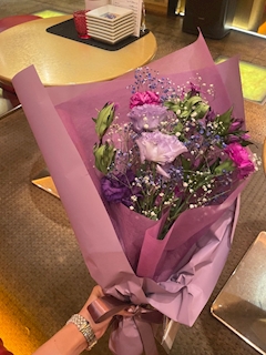 お誕生日の時に!! お花いただきました✨ 私の大好きなむらさき!!そして乃木坂カラー 考えて買ってきてくれたの嬉しすぎてしたありがとうございました✨ 色合いもろとも内装にもぴったりでした