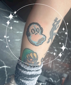 26日、 今日は仕事納めの人達も多かったのかな? 毎年仕事は納まらない民なので そうとは知らず 私はタトゥー納めをするために お休み頂いてました(。>ㅅ<。)💦sorry… Undertaleの ナプスタブルーク👻🎧🎩💧 完成✨️ カラー&ドットで 可愛らしい出来栄え🩵 Undertale大好き🎮 来年も キャラタトゥー増やしていきたいな👍 今年は脚の隙間を埋めたり タッチアップしたりと ゆるく進めてきたので 来年の目標としては 新たな部位にも挑戦! 肌色を埋めていこうと思います💨 ほんとにもう痛い場所しか残ってないので 気合い入れて挑まなくては😣 でもそれもまた一興、 NO TATOO NO LIFE です ❤️