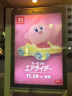カービィのエアライダーめっちゃやりたーい!!!!!! 帰宅途中で広告あるの見つけて、思わずパシャリしちゃいました📸 エアライド世代ではないけど、かのサークライがディレクターとしてプロデュースしているので、めちゃめちゃ気になってます👀 でも、Switch2でしかできないから、悲しいよね、、、🥲いつになったら買えるのやら、、、、