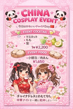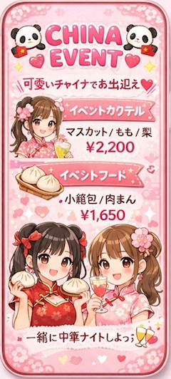 チャイナイベントありがとうございました🇨🇳 チャイナ衣装好きなんですが今回はお店のを借りて 露出多めでした❄️ 限定カクテルと限定フードあるので楽しんでくださいね り